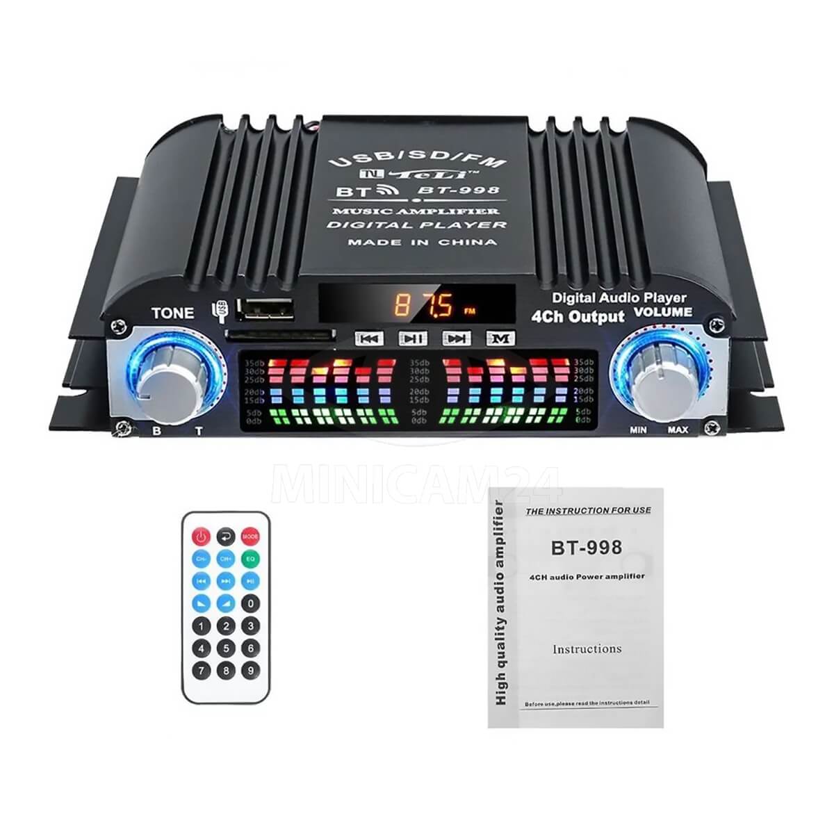 В комплект поставки входят Bluetooth усилитель, пульт для удобного управления и инструкция, которая поможет быстро настроить и начать использовать устройство.